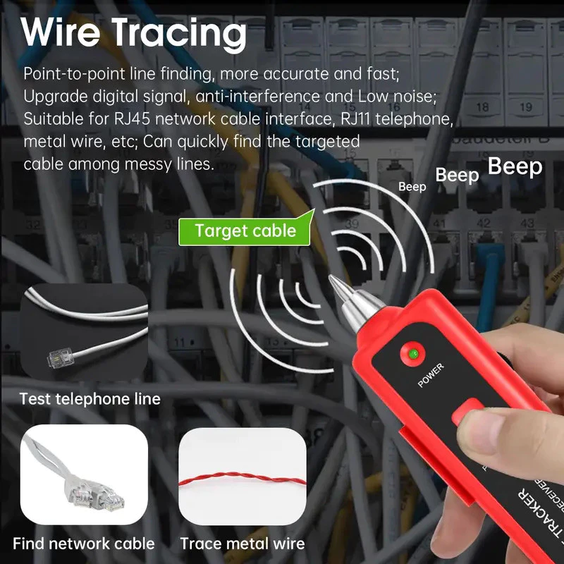 - ✔ Multi-Function Wire Tracer: Easily trace cables inside walls, ceilings, or bundled wiring without stripping insulation—perfect for complex installations.